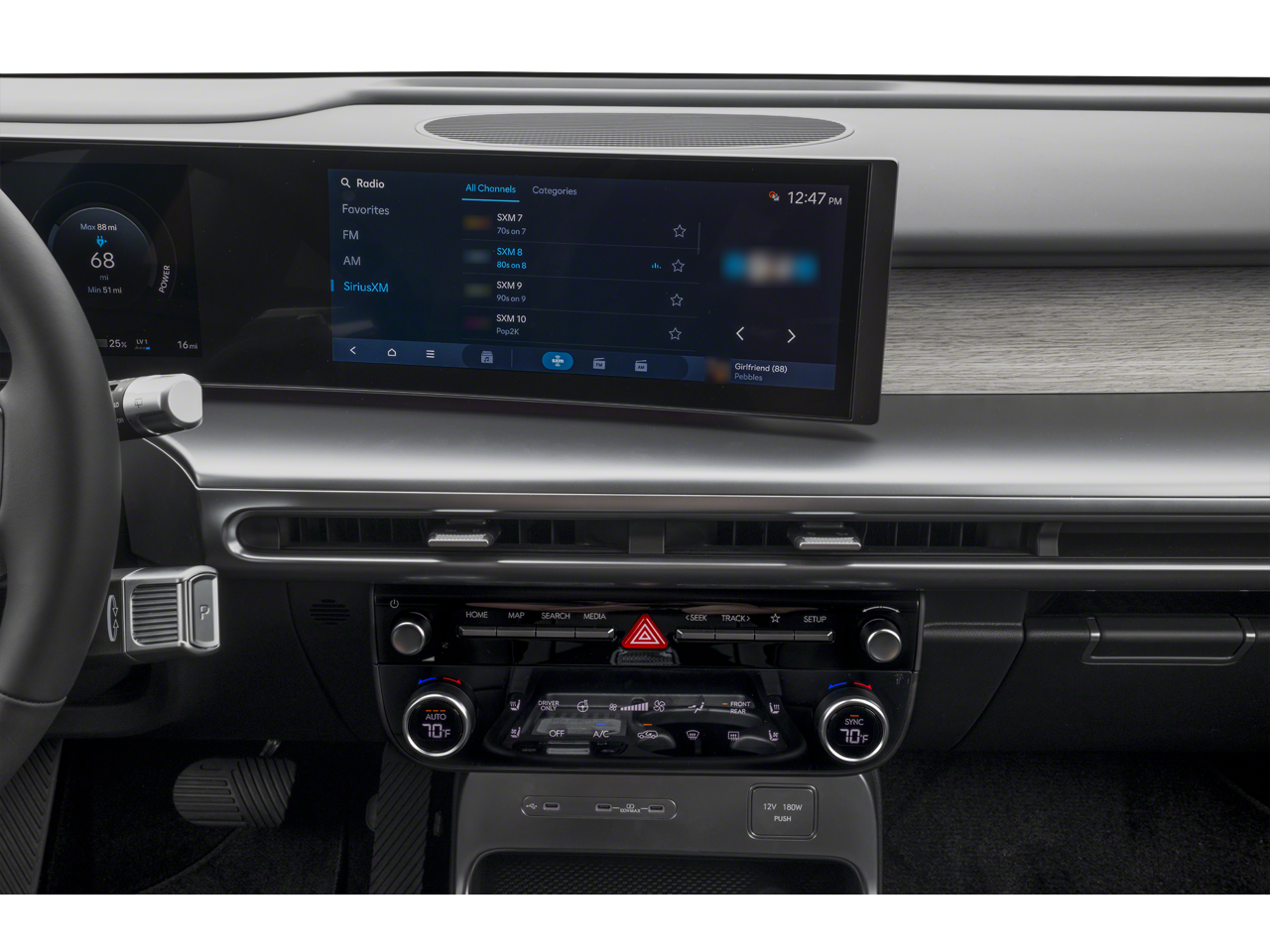 Here hd traffic real-time traffic display|radio w/seek-scan, clock, speed compensated volume control, steering wheel controls and voice activation|window grid antenna|radio: am/fm/siriusxm/hd audio system -inc: 12.3 navigation, 8 speakers, wireless android auto and apple carplay, blue link connected car system, vehicle wi-fi hotspot, usb input, bluetooth multiple device connection, over-the-air (ota) controller ecu and map/multimedia software update capability|wireless phone connectivity|8 speakers|2 lcd monitors in the front|wheels: 20 x 8j alloy|lip spoiler|power liftgate rear cargo access|body-colored front bumper w/metal-look rub strip/fascia accent|deep tinted glass|metal-look side windows trim|rain detecting variable intermittent wipers|black grille|perimeter/approach lights|galvanized steel/aluminum panels|tires: 275/50r20 as|auto on/off projector beam led low/high beam daytime running auto high-beam headlamps w/delay-off|fixed rear window w/wiper and defroster|tailgate/rear door lock included w/power door locks|led brakelights|tire mobility kit|headlights-automatic highbeams|body-colored door handles|body-colored power heated side mirrors w/power folding and turn signal indicator|body-colored rear bumper w/metal-look rub strip/fascia accent and black bumper insert|laminated glass|black bodyside moldings and body-colored wheel well trim|fade-to-off interior lighting|homelink garage door transmitter|60-40 folding split-bench front facing heated manual reclining fold forward seatback rear seat w/manual fore/aft and power folding activation|gauges -inc: speedometer, odometer, traction battery level, power/regen, trip odometer and trip computer|manual tilt/telescoping steering column|outside temp gauge|cruise control w/steering wheel controls|cargo space lights|full carpet floor covering|remote releases -inc: proximity cargo access and keyfob charge port door|driver information center|heated & ventilated front bucket seats -inc: 8-way power front seats w/2-way power lumbar and front seatback pockets|heated leather steering wheel|day-night auto-dimming rearview mirror|rear cupholder|mobile hotspot internet access|fob controls -inc: keyfob cargo access and keyfob window activation|power rear windows and fixed 3rd row windows|integrated navigation system w/voice activation|carpet floor trim|illuminated glove box|full cloth headliner|hvac -inc: underseat ducts and headliner/pillar ducts|front and rear map lights|passenger seat|power 1st row windows w/driver and passenger 1-touch up/down|voice activated dual zone front automatic air conditioning|valet function|delayed accessory power|bluelink+ tracker system|power door locks w/autolock feature|fixed 50-50 bench 3rd row seat front, manual recline, manual fold into floor, 2 manual and adjustable head restraints|smart device remote engine start|proximity key for doors and push button start|smart device integration|driver seat|trip computer|remote keyless entry w/integrated key transmitter, illuminated entry, illuminated ignition switch and panic button|immobilizer|front cupholder|driver foot rest|metal-look gear shifter material|perimeter alarm|cargo features -inc: tire mobility kit|digital/analog appearance|2 seatback storage pockets|partial floor console w/covered storage, mini overhead console w/storage and 2 12v dc power outlets|smart cruise control with stop & go (scc)|h-tex leatherette seating surfaces|air filtration|interior trim -inc: metal-look instrument panel insert, metal-look door panel insert, metal-look console insert and metal-look interior accents|driver and passenger visor vanity mirrors w/driver and passenger illumination, driver and passenger auxiliary mirror|manual adjustable front head restraints and manual adjustable rear head restraints|2 12v dc power outlets|instrument panel bin, driver / passenger and rear door bins|front center armrest and rear center armrest|rear hvac w/separate controls|cargo area concealed storage|trunk/hatch auto-latch|13.16 axle ratio|engine: 226.1kw 303hp dual electric motor|permanent locking hubs|gas-pressurized shock absorbers|automatic full-time all-wheel|battery w/run down protection|strut front suspension w/coil springs|front and rear anti-roll bars|towing equipment -inc: trailer sway control|electric power-assist steering|multi-link rear suspension w/coil springs|transmission: single-speed reduction gear auto -inc: paddle shifters w/regenerative braking system, column-mounted shift-by-wire, drive mode select (eco, normal, sport, snow, my mode) and terrain mode select|7319# gvwr|lithium ion (li-ion) traction battery w/10.9 kw onboard charger, 9.6 hrs charge time