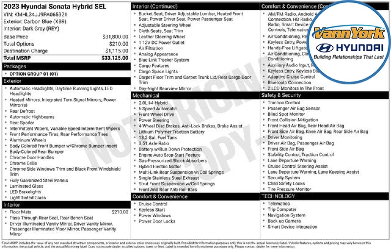 - Vehicle Name: Hyundai Sonata Hybrid